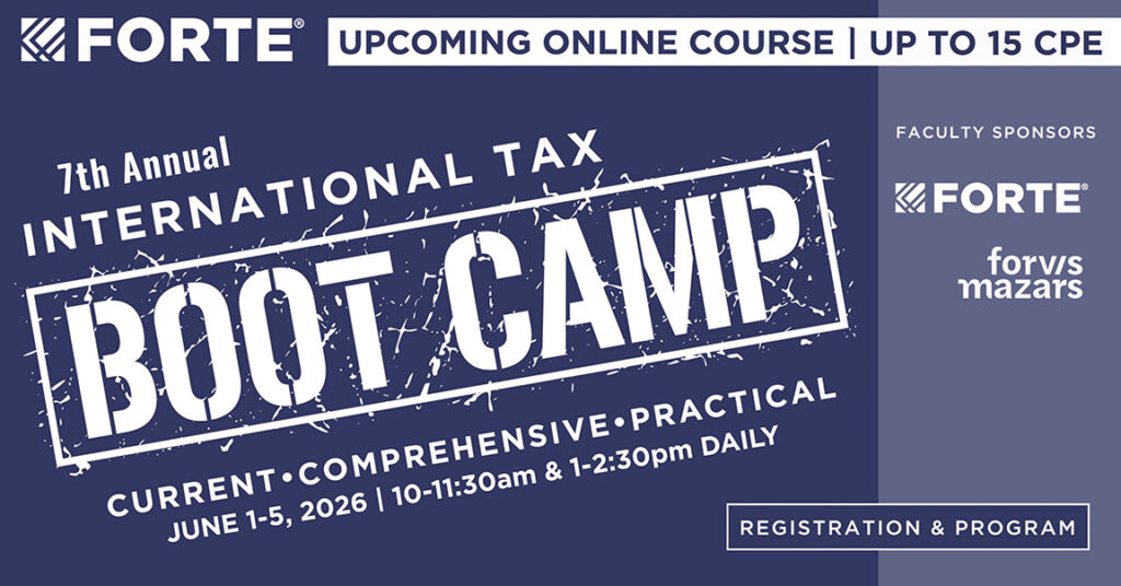 Forte focus specifically on those areas of international taxation that have the greatest impact on U.S.-based multinationals and exporters.